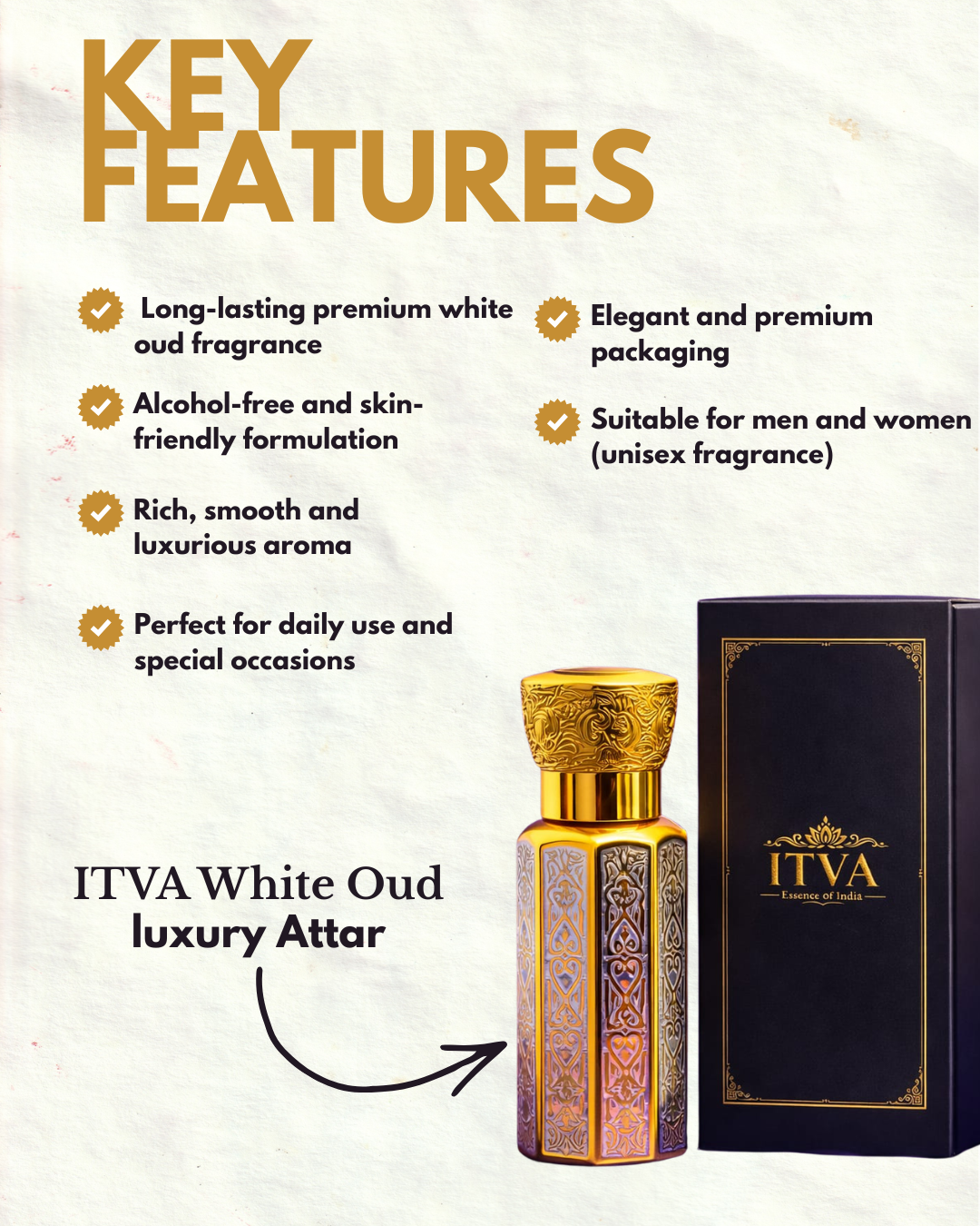 ITVA White Oud Luxury Attar – Long Lasting Premium Natural Oud Fragrance
